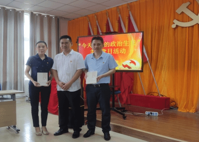 两位过政治生日的党员,一位是学院党委副书记吴燕同志,一位是学院办公室副主任龚勇同志。他们分别重读了自己的入党申请书,向大家讲述了入党初心,并畅谈了入党这些年是如何以实际行动践行入党誓言的。接下来,两位同志重温了入党誓词,支部向他们赠送学习用党史书籍。